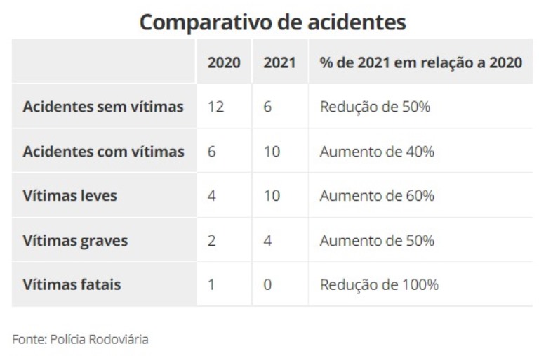 Finalizou às 23h59 desta terça-feira (7) a Operação Independência 2021 realizada pela Polícia Militar Rodoviária no Oeste Paulista. Houve redução pela metade no número de acidentes de trânsito sem vítimas, num comparativo com o ano passado. Contudo, o balanço apresentou um aumento na quantidade de vítimas.